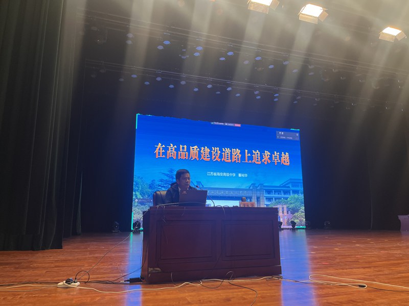 首先,董裕華詳細(xì)介紹了海安中學(xué)的基本情況,總結(jié)了在江蘇省首批高品質(zhì)高中建設(shè)發(fā)展過程中升華的精神特質(zhì),即為“大道至簡”——尊重規(guī)律,回歸常識;“靜水流深”——保持定力,深潛靜思;“臻于至善”——精耕細(xì)作、精益求精;“美美與共”——相互成就、相得益彰。